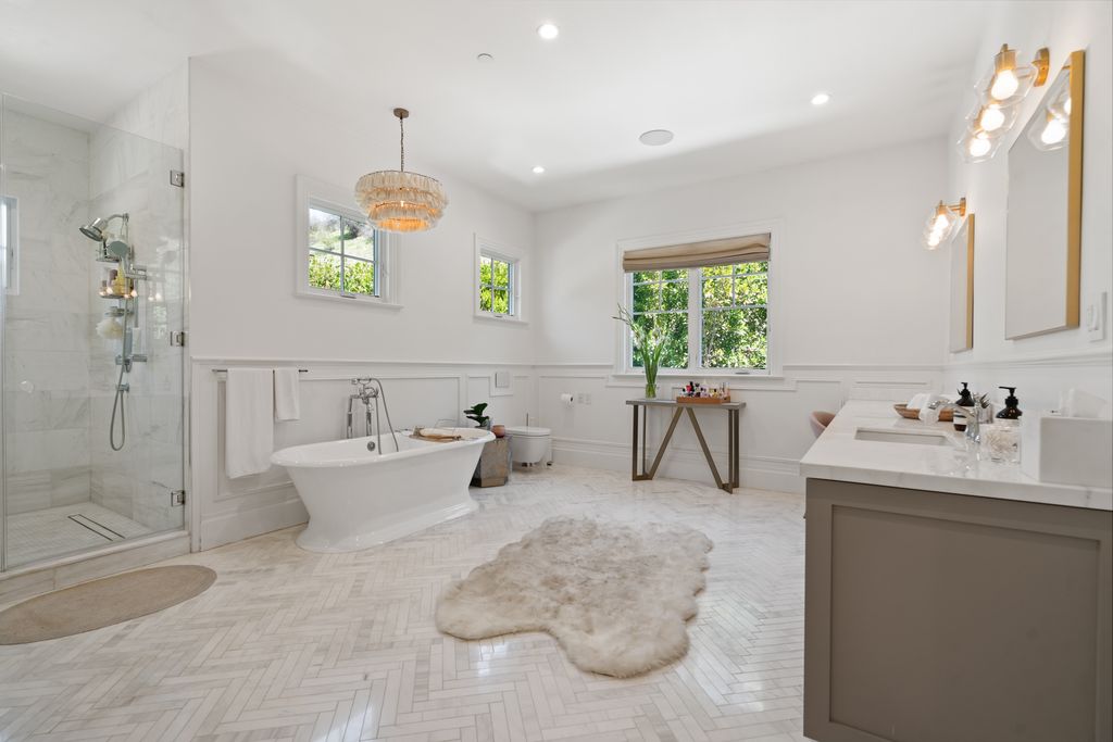 Discover this fully furnished, 5-bedroom, 9-bathroom masterpiece for lease in the heart of Brentwood. A true sanctuary offering the best of Los Angeles living. The expansive main floor features high coffered ceilings, two elegant fireplaces, and seamless indoor-outdoor flow, creating a tranquil yet inviting atmosphere. The fully stocked gourmet kitchen is a chef’s dream, boasting stainless steel appliances, a walk-in pantry, and marble finishes. A main floor office features abundant natural light and is perfect for work from home zoom meetings.