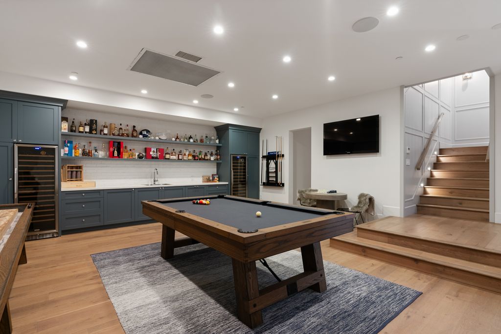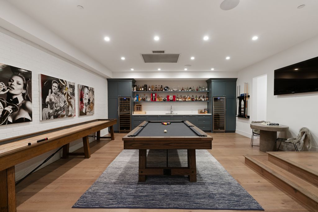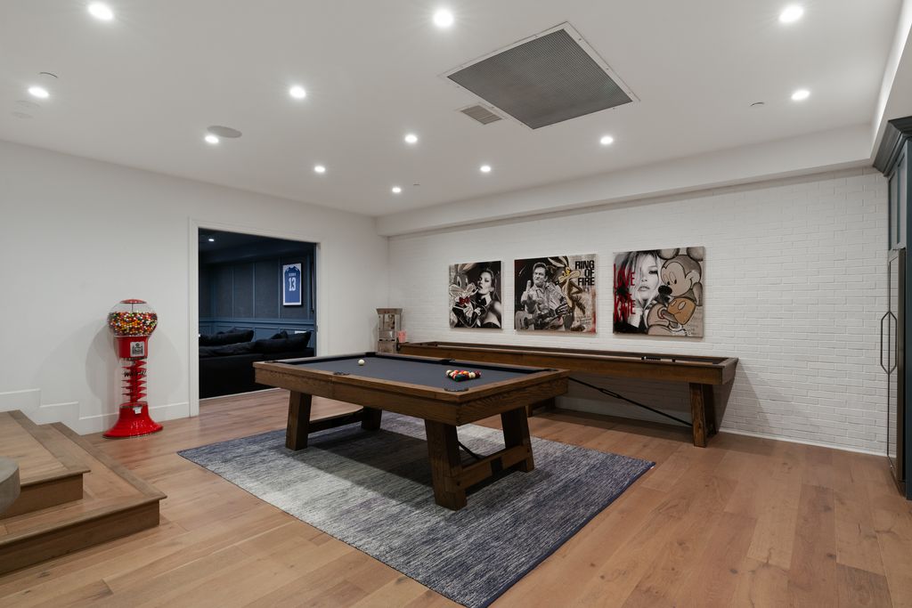 Entertainment is effortless with a luxurious screening room featuring plush cloud couches and a popcorn machine. The game room includes a sleek bar and a versatile billiards/ping pong table — ideal for hosting guests. . A portion of the garage has been converted into an incredible Pilates, yoga, and fitness studio, complete with reformers, padded flooring, and a punching bag — perfect for maintaining your fitness routine without leaving home.