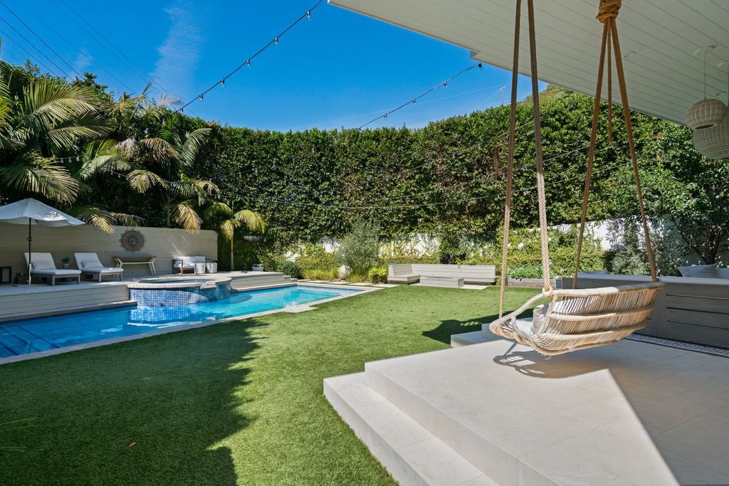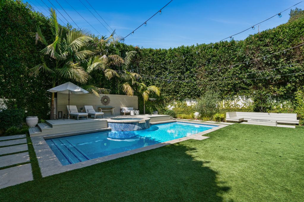 Throughout the home, pristine European oak hardwood floors add warmth and sophistication. Step outside to your private outdoor oasis, complete with a sparkling pool, spa, built-in BBQ, cozy fire pit, and ample space for both play and dining al fresco.